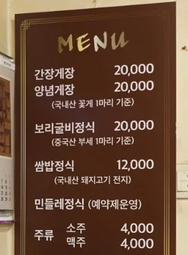 간장게장정식: 20,000원 (꽃게 1마리 기준)